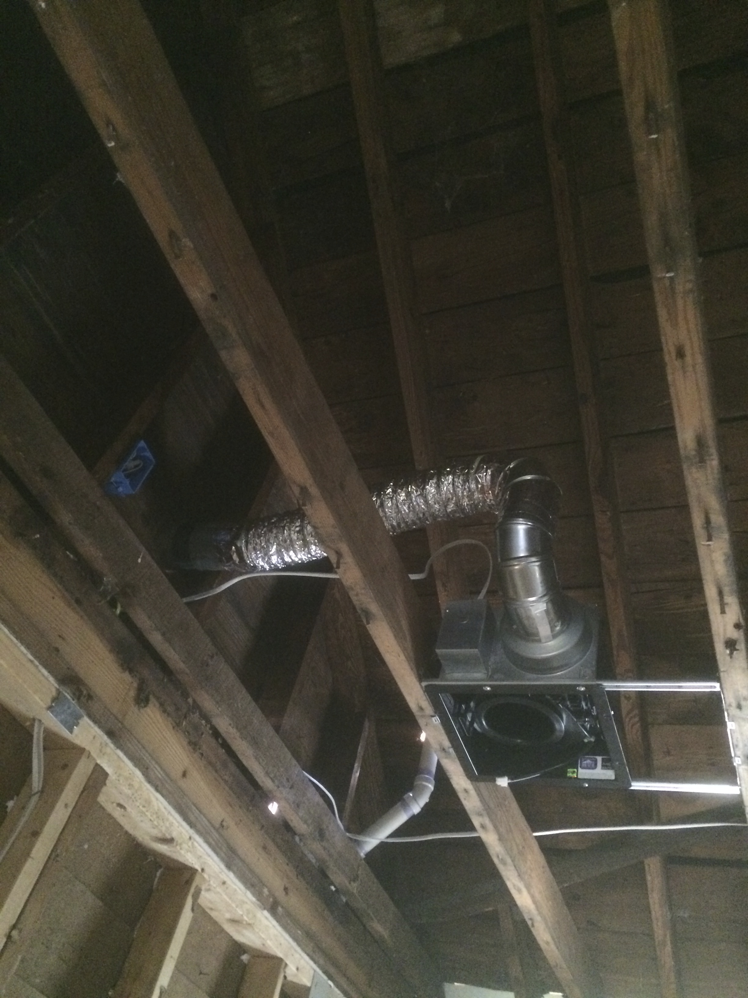 There has been a flurry of activity out at the house recently. We installed two new Panasonic bath exhaust fans and a whole house Panasonic Energy Recovery Ventilator (ERV), all three of which were generously donated by Panasonic. Bath and kitchen exhaust fans are essential in ensuring good indoor air quality by removing pollutants from the home. They are also Energy Star certified, so they will be both energy efficient and quiet.